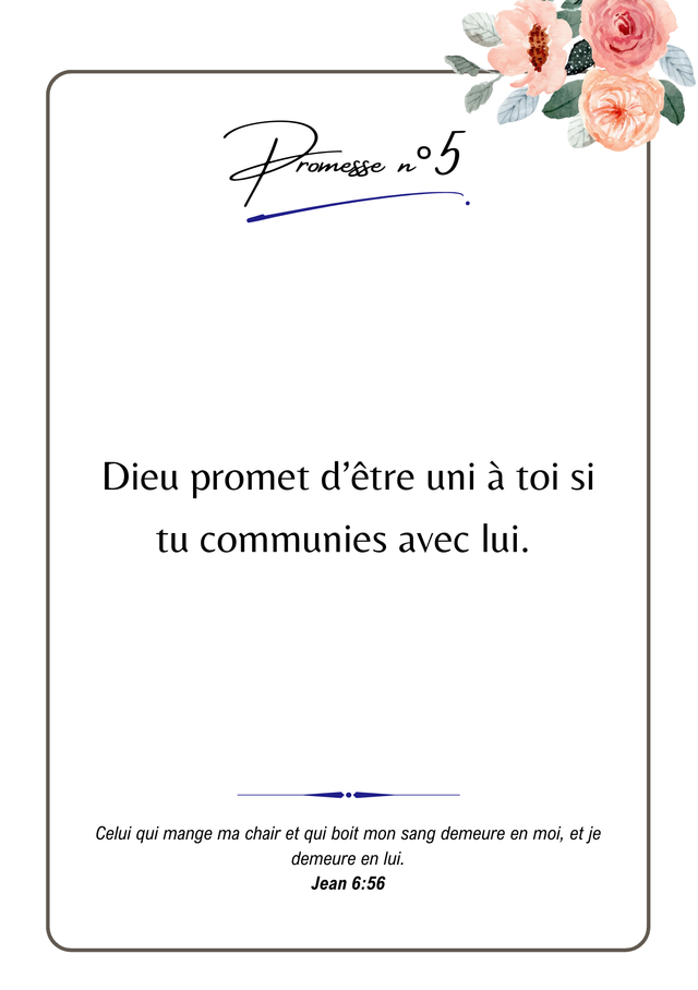 Journal intime chrétien : un carnet de notes personnel où vous pourrez y noter vos réflexions, vos défis, vos proclamations de foi et actions de grâce. Vous trouverez à chaque mois un verset biblique ainsi qu'une promesse de Dieu afin de vous encourager.